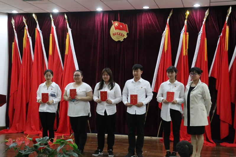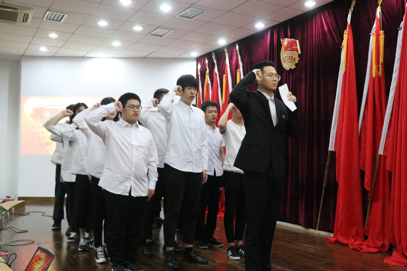 随后,新团员代表在大会师生的见证下,庄严宣誓,光荣地加入中国共产主义青年团,并获颁发团员证及团徽。