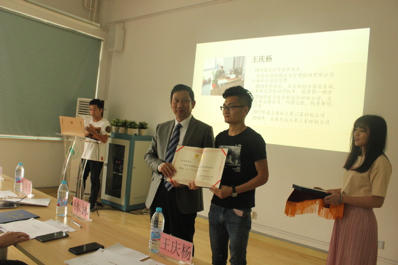 会上为7位校内外创业指导教师举行了受聘仪式,胡展飞副院长分别为高渭萍、林林、王庆杨、曹鸿涛、陶媛、温静、杨伟英等创业指导教师颁发聘书。随后胡展飞副院长作“技术与技能的内涵、本质及其相互关系”报告,从技术技能的哲学思考为切入点,对技术技能在管理、服务业中的逻辑进路以及在生产企业领域中的逻辑进路等方面进行了深入浅出地讲解,使学生对职业技术的涵义及其对社会的作用有了新的认识。