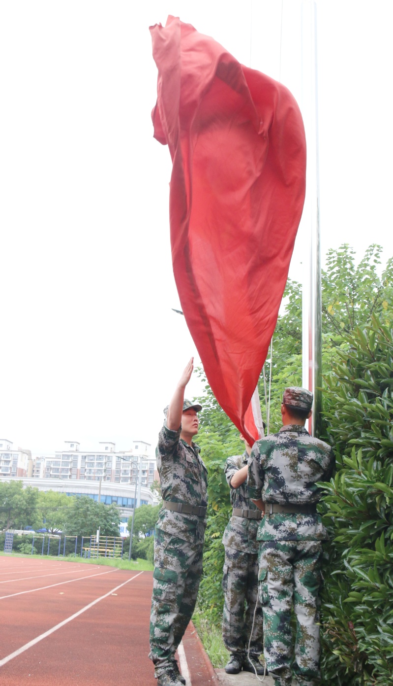 入营仪式在慷慨激昂的国歌中拉开了帷幕。军训团进行了庄重的授旗仪式。
