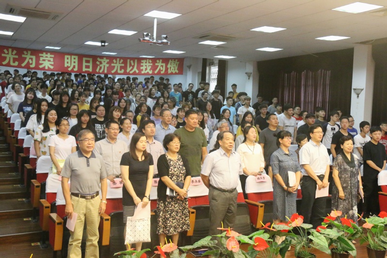 激情昂扬的国歌旋律拉开了开学典礼的序幕。院长李永盛发表了热情洋溢的讲话,为全体新生上了大学课堂的第一课,指出新生们是济光基因的新传承,是济光的新希望和新活力,愿大家在大学这段人生最美好的阶段渡过无悔的青春。同时,李永盛院长对同学们提几点要求:志存高远、高扬理想大旗,求真创新、激发创造活力,锤炼品格、奋斗引领前行,希望新生们将个人的梦想与济光梦和中国梦紧密结合起来,充实自我、历练身心、奋勇拼搏、砥砺前行,努力成为新时代青年的标杆。