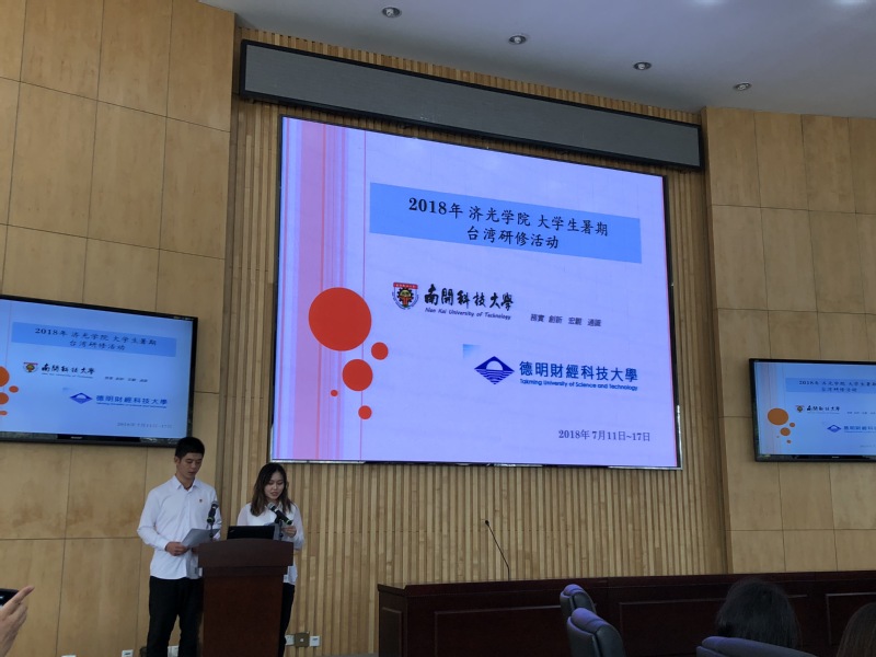 在学生交流部分,建筑系三名教师和六名学生详细阐述了参加布拉格建筑学院暑期工作营期间的所学所想,经管系与机电系学生介绍了在南开科技大学进行了专业方面的课程研修,在德明财经科技大学聆听的《礼行遍天下》《从故宫看文创产业之发展》《服务业达人之养成》专题讲座以及参观故宫博物院和国父纪念馆的学习经历,学生们感受到全方位的文化教育体验。