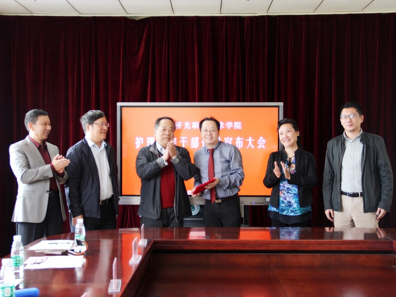 护理学院院长童晓文同志作任职发言,他对济光学院领导对他的信任和支持表示由衷感谢。他表示,自己不会辜负厚望,尽所能发挥自身专业优势,带入优质资源,加紧学院与医院的对接,拓宽护理国际合作交流,为济光护理学院的1300余名“孩子”谋划更好的机会和出路。