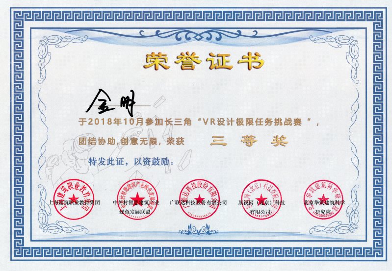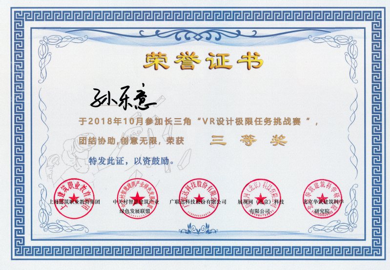 在11月1日结束的长三角”首届VR极限任务挑战赛”中,我院建筑系陈仙鸿老师带领孙乐意(建筑设计专业)、金明(建筑设计专业)、唐逸杰(建筑室内设计专业)、吕涵(建筑室内设计专业)等四名学生组成的“JTLS团队”历经VR软件培训、方案设计、VR建模、成果展示等多个环节的比拼,荣获BIM装饰VR组三等奖。本次竞赛获奖充分体现了建筑系在专业教学中高度重视建筑信息化技术的应用,也代表着建筑系跨专业交流与协作的成果。