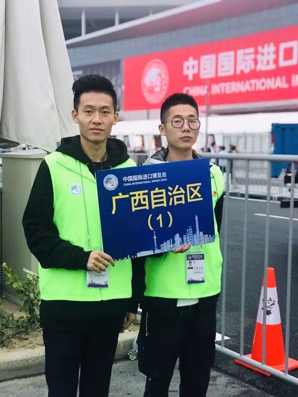 进博会志愿者上岗前都有严格的培训。我院十名志愿者被分为了多个小组,分别为广西省级领导接待小组、河南省领导接待小组、广西壮族自治区交易团。前期,志愿者们多次至火车站、宾馆、会展中心踩点演练。