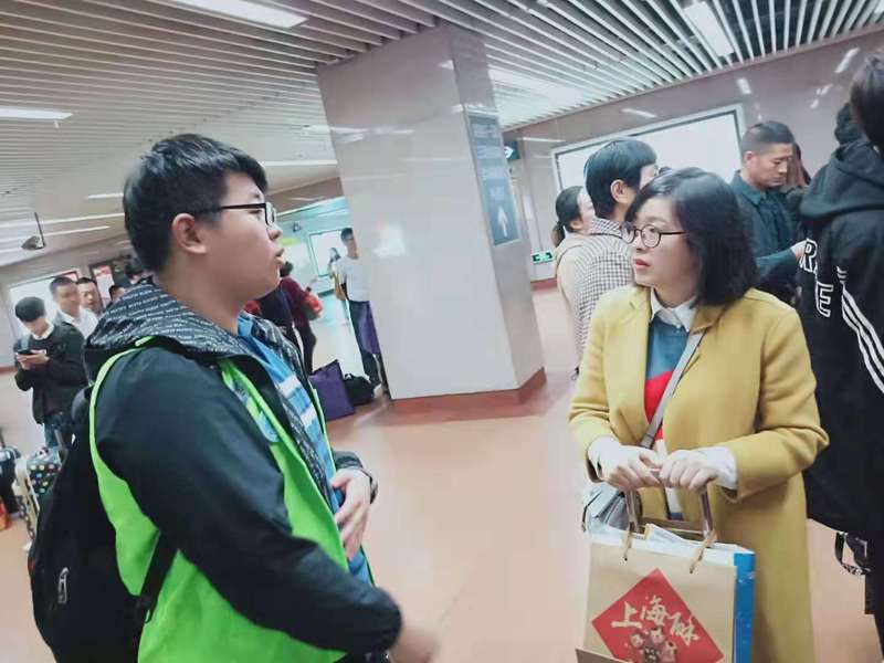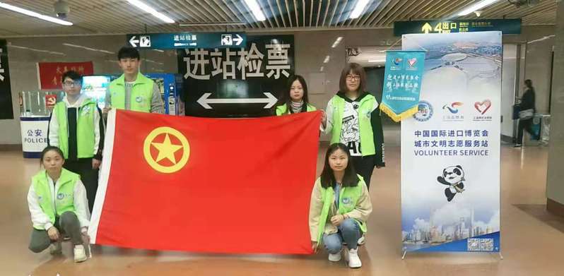 我院还在上海火车站地铁站开展了“宣进博服务大众”的志愿者活动。由于活动地点不在学校周边,志愿者们戴着进口博览会的徽章,背着所需物资,早早地到达了上海火车站的地铁口,并在各个出口处安排好人员,设置了易拉宝,向前来询问的人作活动介绍,同时分发进博会的宣传册,进一步配合进博会的举办,进一步彰显了“奉献、有爱、互助、进步”的志愿精神。
