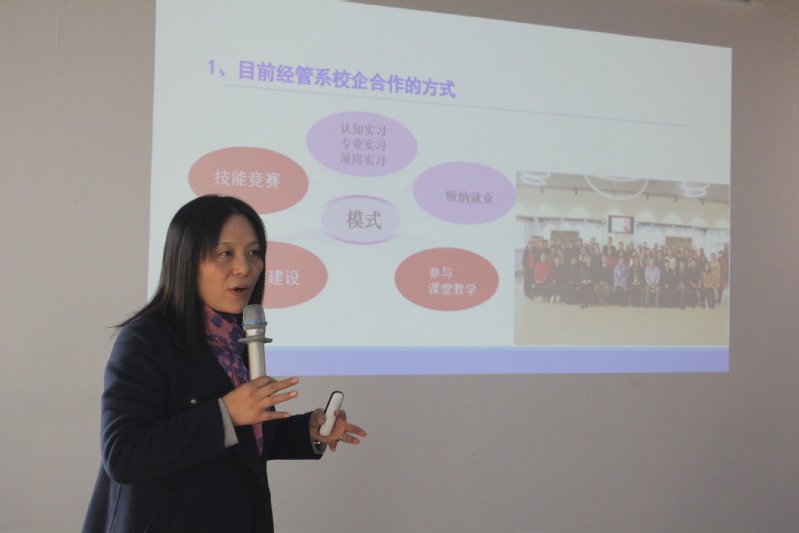 经管系主任张迺英教授代表经管系全体教师对企业嘉宾的到来表示感谢,并为企业嘉宾就经管系目前专业设置及定位、专业群、学生数及师资、校内实训室等情况作了介绍,其中重点介绍了目前经管系校企合作方式,包括参与专业课堂教学、人才培养、技能竞赛等,并对校企合作模式多样性和校企合作进一步深化提出了建设性的思考和建议。