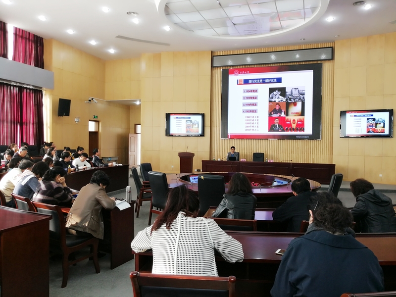 11月27日下午,我院开展宪法学习专题会,特邀请同济大学法学院副院长徐钢博士为全院师生作“牢固树立宪法权威,全面贯彻实施宪法”专题讲座。讲座也是我院为了迎接12月4日宪法学习日的系列举措之一,旨在全院范围内普及法律知识,促进师生自觉培养“尊法、学法、守法、用法”的法律意识,深入学习贯彻党的十九大精神,进一步增强宪法意识、维护宪法权威。