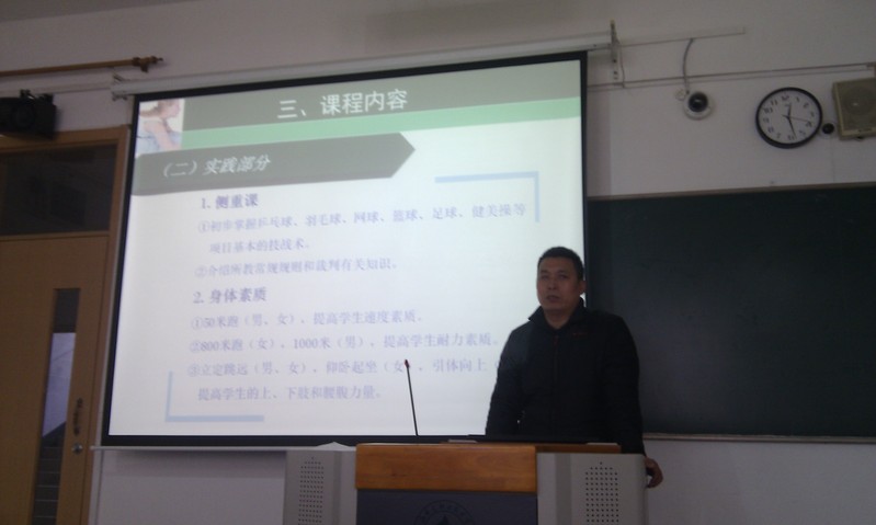 公共英语、应用文写作和体育三个教研室共派出四位青年教师上台交流,每位教师讲解本课程中某一章节的某一片段。在交流中,四位老师各有所长,如有的老师用古诗词导入英语课程,在课堂里营造出人文美;有的老师结合自身事例向学生讲述诚信的重要性,大家都在讲课中有声有色地融入了课程思政元素,不仅有知识的传授,更体现了拳拳育人之心。