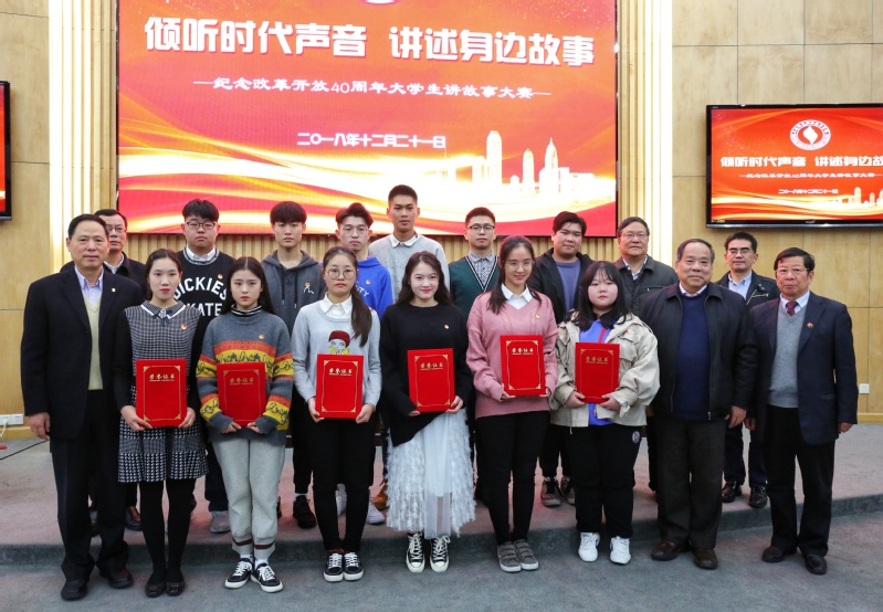 来自6个院系的12名选手们以各自独特的风格特色,通过讲故事的形式,生动直观地呈现出改革开放40年来我国经济、政治、文化、社会、生态发展中所取得的辉煌成就,展现出当代大学生坚定的理想信念和良好的精神面貌,赢得了现场师生的阵阵掌声。