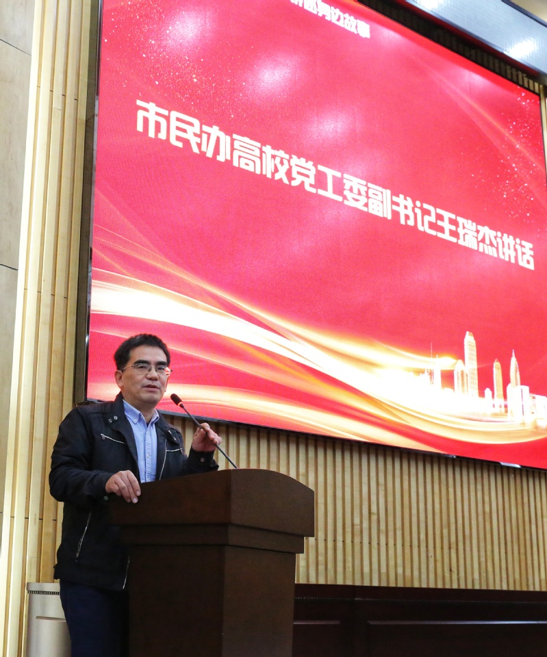 市民办高校党工委副书记王瑞杰副书记也应邀出席了大赛现场。他勉励青年学子,此次活动是习总书记在改革开放40周年大会上的讲话精神在济光学院落地、生根、开花、结果,青年大学生要牢记习总书记在北大师生座谈会上的希望:要爱国,忠于祖国,忠于人民;要励志,立鸿鹄志,做奋斗者;要求真,求真学问,练真本领;要力行,知行合一,做实干家。