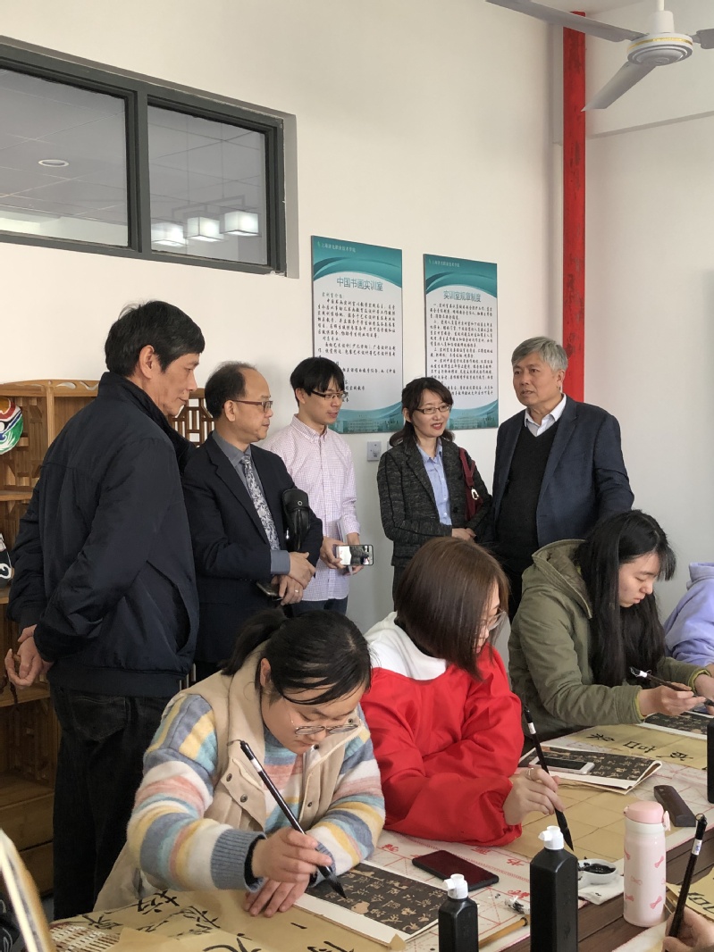 吴国欣主任对于来访嘉宾表示热烈的欢迎,并陪同参观了艺术设计系室内软装实训室、非遗蜡染实训室、图文实训室、中国书画实训室、摄影实训室及音乐实训室等校内实训基地,并在随后的会谈中对于双方的合作与交流进行了更加深入的探讨。