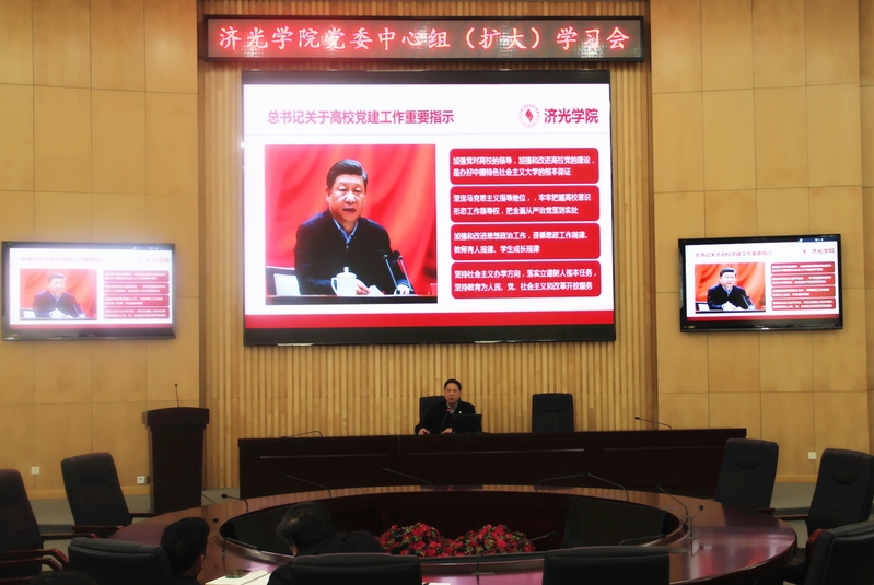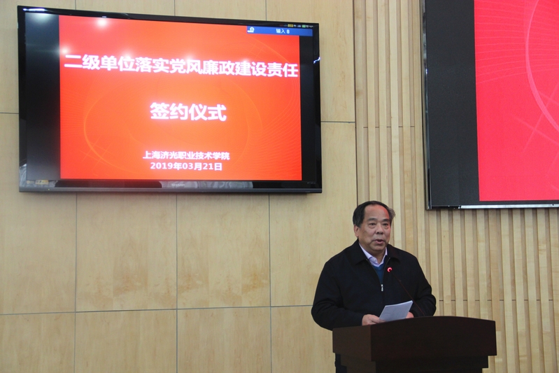 党委书记姜富明以“落实‘三大主体责任’扎实推进全面从严治党”为主题,传达了习近平总书记关于高校意识形态工作指示、中共中央关于加强党的政治建设的意见以及上海市关于党建工作的要求。他围绕意识形态工作、党建工作、党风廉政建设工作、党建与事业发展几大主体对党中央精神进行了深刻解读,并结合我院具体情况从四个方面深入剖析:一是意识形态面临着新的形式,学院要进一步落实全国思政工作和全国教育大会以及3月18日总书记在学校思政理论课座谈会上的讲话精神,贯彻党的教育方针,落实立德树人根本任务,纵深推进“三全育人”工作 ,深化内涵建设,健全“德智体美劳全面发展”的德育体系,在挑战中实施好意识形态工作责任制。二是面对高校党建工作中存在问题和不足,进一步学习贯彻第26次全国高校党建工作会议精神,2019年以习近平新时代中国特色社会主义思想武装头脑,继续开展“不忘初心、牢记使命”主题教育,提升党建工作质量;全面贯彻党的教育方针,进一步落实全国高校思政工作会议、全国教育大会等精神;加强党务、党员队伍建设,夯实组织基础,发挥基层党组织战斗堡垒和党员先锋模范作用;巩固思政改革的成效,推进“三全育人”机制不断完善;坚持思想引领,立德树人,深化文化育人,使学校成为培养社会主义建设者和接班人的坚强阵地。三是学校党风廉政建设工作加强制度建设,构建长效机制; 加强政治建设,涵养政治生态;加强廉政教育,筑牢思想防线;加强作风建设,坚决纠正四风 ;加强监督检查,规范权力运行;严明党的纪律,严查违纪行为。四是围绕十九大报告、全国教育大会、国发4号20条、政府工作报告等文件精神,对职业教育的未来进行思考,结合行业现状与学院实际情况,把学院党建与业务工作紧密结合,同心聚力、抓住机遇、奋力拼搏,努力将济光办成具有鲜明特色职业技术学院 。