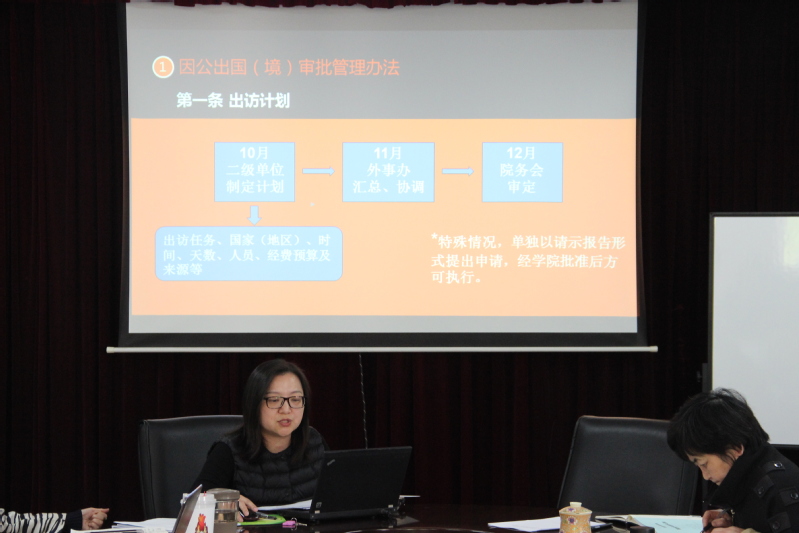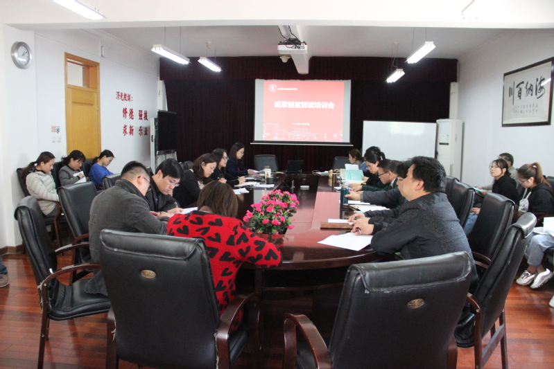 2019年是我院的制度建设年,去年下半年以来,学院各部门在制度建设中不断加大力度,出台了许多有关行政办公、教育教学、专业建设、财务管理等方面的规章制度。为了让全院各单位对这些规章制度有一个全面的了解,能够循规办事,照章行事, 4月12日,我院召集各相关部门、院系召开规章制度解读培训会,纪委、资产与设备管理处、财务处、外事办针对近期下发的文件进行详细介绍和解读。