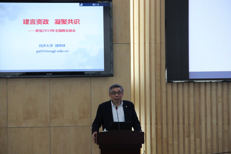 2019年是新中国成立70周年,也是人民政协成立70周年。我院将高度重视全国“两会”精神学习,关注教育教学综合改革,加强思想政治引领、广泛凝聚共识,积极谋划探索民办教育新发展。4月11日下午,我院特邀全国政协委员、同济大学副校长、民盟上海市第十五届委员会副主任委员、博士生导师顾祥林教授应邀来校作全国两会精神专题报告。报告会由党委书记姜富明主持,学院领导、院长助理、党委中心组成员,全体中层干部,各基层党组织书记,全体辅导员、思政教师聆听了报告。