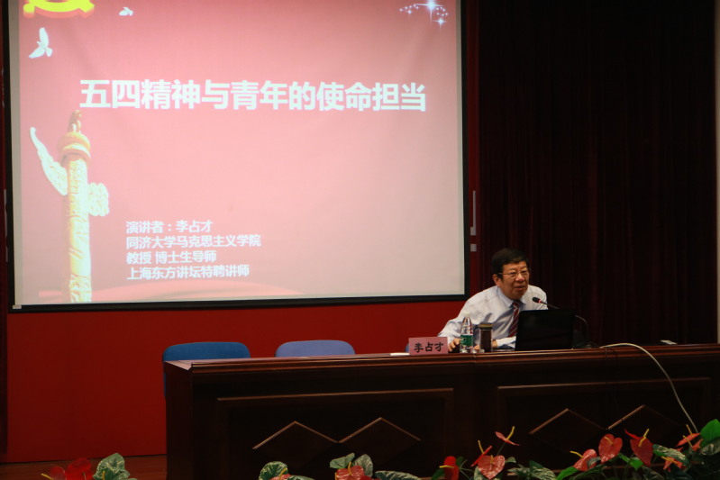 为深入学习宣传贯彻学习习近平总书记在纪念五四运动100周年大会上重要讲话精神,5月21日下午13:10,我院“名师李占才工作室”负责人、同济大学马克思主义学院名师李占才教授来校作题为《五四精神与青年的使命担当》的主题报告,讲座由基础部副主任孟凡涛主持。党委书记姜富明、思政部教师、学生代表参加聆听讲座。