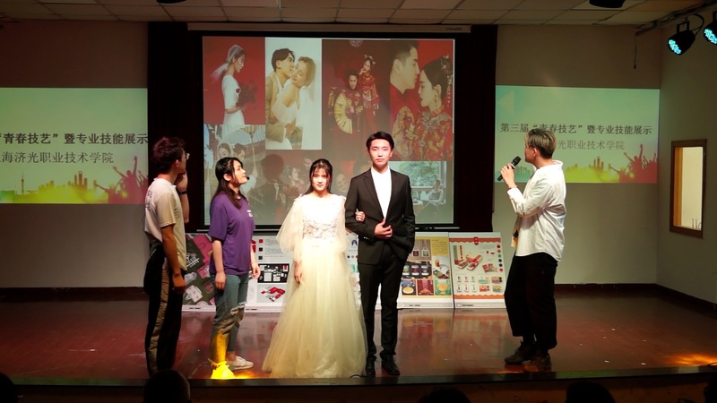 本届“青春技艺”技能展示活动,最大的亮点是采用了舞台剧的表现形式,描述一对同是济光学院毕业的恋人,通过相知、相恋、工作、买车、买房、结婚等不同人生阶段的故事,串联起济光学院6个院系、12个专业的专业技能。整场演出综合运用音乐、舞蹈、情景表演、多媒体展示等舞台手段,节目内容精彩纷呈,为现场师生奉上了一份技艺盛宴,令人耳目一新。台上台下频繁互动,更是让全场掌声、笑声不断,高潮迭起。