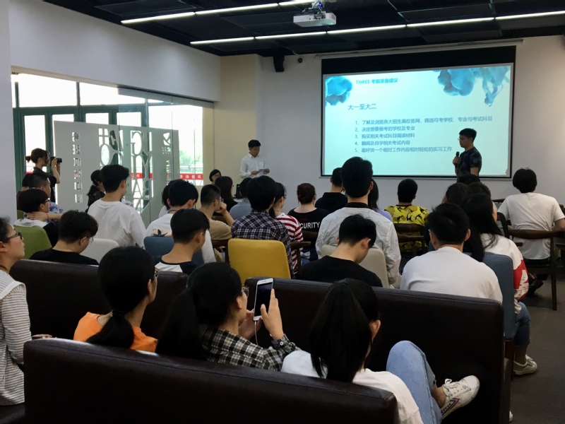 录取学生代表依次上台分享考试经验,他们讲述了自己专升本复习的心路历程,以及备考中需要注意的重点事项,并就学习方法和院校选择等方面为在场的学弟学妹们提供建议和思路。在互动交流环节,面对在场学弟学妹的众多问题困惑, 5位同学耐心为大家答疑解惑,鼓励大家要勇于直面挑战,敢于拼搏,不要留下遗憾。