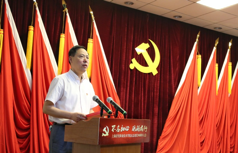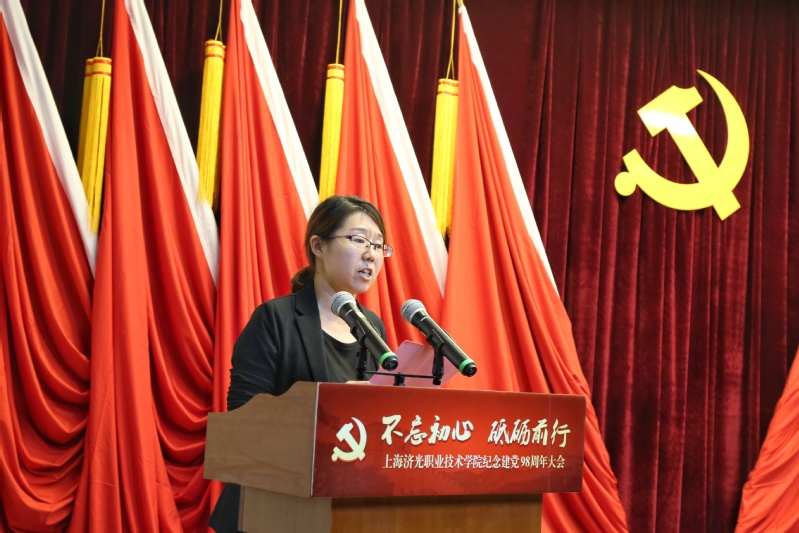 党委书记姜富明发表讲话,他指出,中国共产党的创建,是中华民族发展史上开天辟地的大事,具有伟大而深远的意义,回顾98年的风雨历程,中国共产党历经战争与和平、建设与改革、挫折与胜利,开创了新中国的亘古伟业。学院党委要立足发展实际,全面落实党的十九大和全国教育大会精神,特别是习总书记系列重要讲话精神,贯彻落实市教卫工作党委各项决策部署,聚焦“充分发挥党组织的政治核心作用”。随后,姜书记向全体党员提出三点要求:一是要进一步坚定理想信念,牢记以立德树人为根本,把党建工作和育人工作同步发力、同步攻坚,“三全育人”要落地、要务实、要有成效。贯彻落实职教二十条精神,抓住历史性的发展机遇,乘势而上,勇于探索,创新改革发展,明确目标定位,保持战略定力,担当起我们的责任和使命。二是要筑牢战斗堡垒思想根基,坚持思想建党、理论强党,加强自身建设,进一步坚定信心,切实做到五个“不动摇”。三是要以“不忘初心、牢记使命”主题教育为抓手,进一步推动学院各级党组织和广大党员干部深入学习贯彻习近平新时代中国特色社会主义思想,把党的十九大精神、全国教育大会精神和国家职业教育改革等各项决策具体落实到行动上,进一步强化党员干部勇担职责使命,焕发干事创新的精气神。
