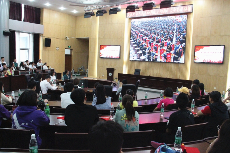 按照学院党委的统一部署要求,上午10点,学院组织师生代表共同集中观看庆祝中华人民共和国成立70周年阅兵仪式,各院系设分会场组织师生观看。阅兵是展示一个国家、一支军队精气神的最好仪式,青年学子们观看过程中饱含热情,心潮澎湃。