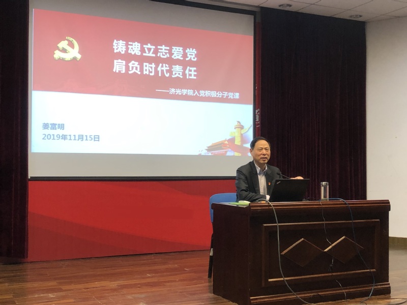 11月15日,党委书记姜富明以《铸魂立志爱党,肩负时代责任》为题,为我院党校22期学员讲专题党课。