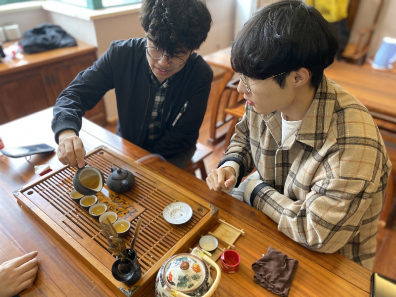 学院为大庆大学的学生安排了丰富多彩的校内学习课程和校外参访活动。在基础部开设的对外汉语的课程中,来自韩国的同学们展现了自己较好的汉语学习基础,能够在志愿者的配合下进行汉语交流,两校学生由此也拉开了彼此建立友谊的序幕;艺术设计系安排的中国传统剪纸艺术深深吸引了大庆大学的同学们,大家在老师的指导下,都完成了一件自己的手工作品;在建筑系安排的专题讲座中,同学们领略了中国城市建设的高速发展和成就;经管系安排了此次参加世界技能大赛两个赛项的老师和同学,在实训室中带领大家学习了酒店接待和餐厅服务方面的专业技能。