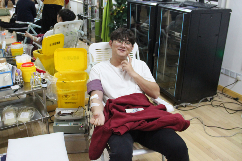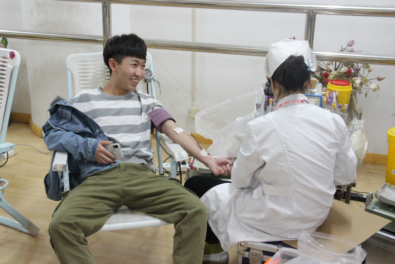 一大清早,在志愿者指引下,献血志愿者们有秩序地排队等候进行献血登记,填表区的工作人员细心指导着献血者们,有序的完成了献血前的信息采集与血液化验和量血压,为献血工作的进一步展开做好了充足的准备工作。等待化验结果期间,每一位同学都认真阅读献血知识宣传手册,激情满满准备勇敢地撸起袖子奉献爱心。院领导和部门、院系负责人到场慰问献血师生并看望参与献血工作的全体人员,为大家带来温暖的问候。温暖的身着橙色衣服志愿者,全程耐心陪护献血师生,一杯杯热气腾腾的红糖水表达对献血师生的关爱和温暖。献血过程中,大家的脸上或写满了坚毅和勇敢,或淡定十足或挑战自己勇气可嘉,迈出勇敢的一大步,献血现场弥漫着浓浓的暖意。