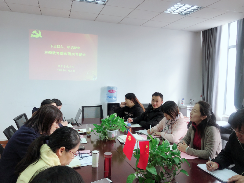 系主任张迺英就工作中存在的问题,从领导班子的大局观判断、教师与辅导员队伍建设良好生态圈营造、党员引领作用和工作作风、干事的责任担当等方面进行深度剖析并提出建议。与会党员同志认真听取张迺英主任提出的各项问题,并结合工作实际发表了就主题教育开展以来自己的心得体会。副主任林俊认为,我们要通过组织教育,查找差距、症结与解决方法,充分发挥集体的力量,调动全体教师的积极性,同时要创新党建工作的方式,将其落到实处,以育人为出发点和落脚点,培养青年骨干教师,营造良好的氛围。副主任李娜提出,党总支在即知即改过程中,认为自身缺乏主动及勇于解决问题的意识,今后要以“育人”工作为重点,注重学生核心价值观的引导,学风、班风问题的营造,不断加强老师们的凝聚力和大局意识。专职教师沈甸和盛朱勇就电子商务专业高职扩招混班教学带来的问题,提出教师和学生要加强双向沟通,及时了解00后学生思想特点、家庭情况、掌握学生的动态,将课程思政更好的融入到课堂教学中去。