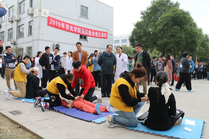 为了增强师生的消防意识,让大家科学全面掌握消防应急的知识,提升大家在火灾中的互救、自救能力,11月22日11:00后保处、红十字会共同开展了消防演习和现场急救演练。院长李永盛、党委书记姜富明到场观摩演习并与消防队互赠锦旗。各部门负责人与护理学院、建筑系、机电系和建工系700余师生参加了演习。