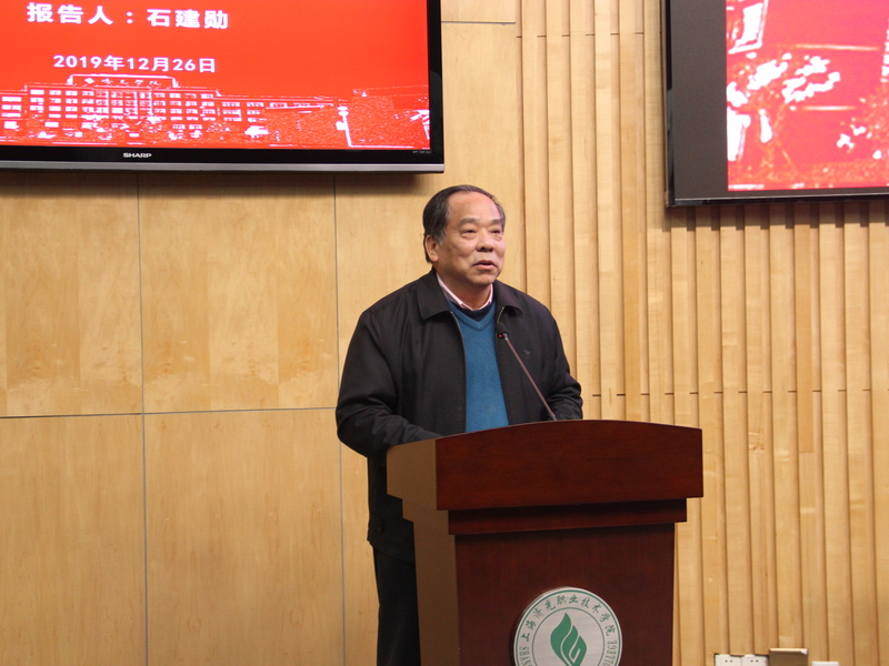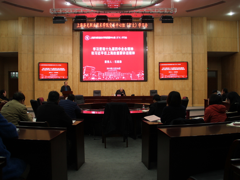 12月26日下午,我院中心组(扩大)学习会邀请上海市习近平新时代中国特色社会主义思想研究中心副主任、上海市十九届四中全会精神宣讲团讲师、上海市金融学会副会长、同济大学国家创新发展研究院首席专家、副院长、同济大学经济与管理学院石建勋教授来校作《不忘初心 牢记使命 深入学习贯彻党的十九届四中全会精神》报告。全体党委中心组成员、思政教师、专业主任和辅导员到场学习聆听。
