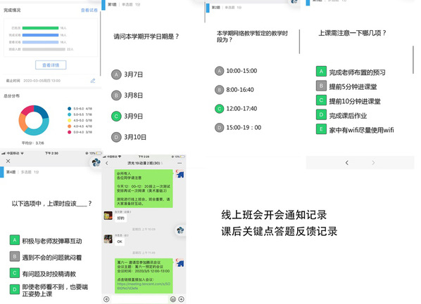 各院系辅导员为保证班会课效果,会前进行了充分的准备,提前列出会议提纲及要点,一方面围绕要点将在线教学前期相关准备工作及时告知学生,督促学生在做好防疫相关工作同时按要求参加在线课程学习,并向全体学生和家长发放《在线教学告知书》;另一方面,针对自身班级情况拓展班会内容,如2017级毕业生实习就业工作、2018级四六级报名情况等。会上,辅导员与学生充分沟通,研究制定了各具特点并行之有效的工作方法。