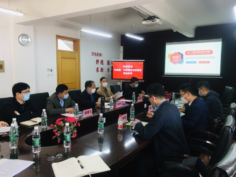 4月29日下午,由上海市教育委员会督导室、学生处和上海市教育考试院组成的防疫安全检查组一行来我校检查指导专科自主招生考试防疫和考试考务保障等工作。学院院长李永盛、党委书记姜富明、副院长胡展飞及招生办、教务处、后勤保卫处等主要负责同志参加。