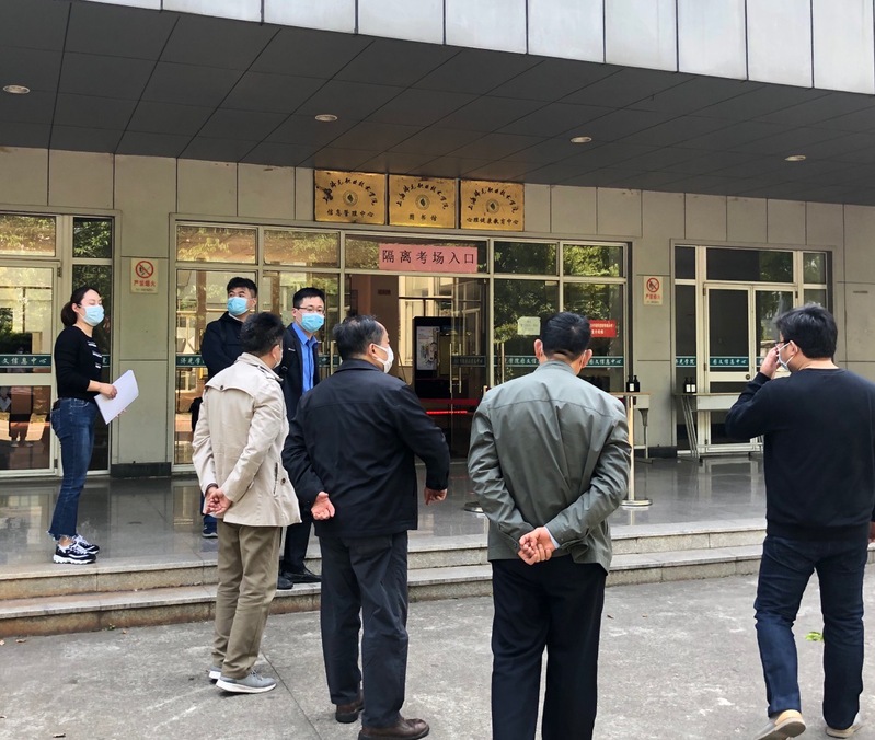 检查组一行听取了招办主任孙遥关于自主招生考试疫情防控预案以及考试中突发情况处理流程的汇报,并实地查看了校门口热成像测温仪通道、南北门进出手动测温通道、标准化考场、临时留观点、隔离备用考场和相关公共区域的防疫安全建设及防疫物资储配等情况。检查小组充分肯定了学院现阶段招生考试疫情防控准备工作,表示在学院主要领导亲自部署指挥下,学院积极主动联系区、镇二级疾控部门防疫专家来校对模拟演练进行指导,构筑了疫情防范的坚固防线,将疫情防控和应急准备的各项措施落实到位。检查组同时希望我院在准备充分的基础上进一步加强排查、完善细节、科学防控,优化校内临时留观点和备用考场功能,组织安排好依法自主招生考试各项工作,为广大考生和考试考务工作人员提供安全的环境,确保此次招生考试工作顺利完成。