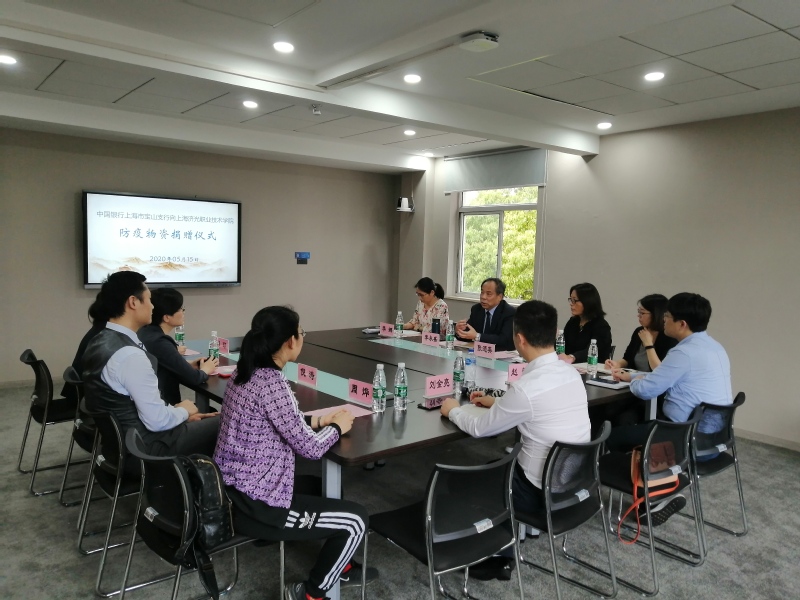 为助力我院抗击新冠肺炎疫情,以实际行动守护学校师生健康,5月15日下午,中国银行上海市宝山支行副行长浦晓燕、中国银行上海市罗店支行行长倪涛、中国银行上海市宝山支行个人数字金融部经理王欣云一行来到我院,代表中国银行上海市宝山支行向我院捐赠防疫物资。院长李永盛、经管系主任张迺英、总支书记胡春宝、经管系副系主任李娜、林俊及金融专业教师团队出席仪式并接受捐赠。