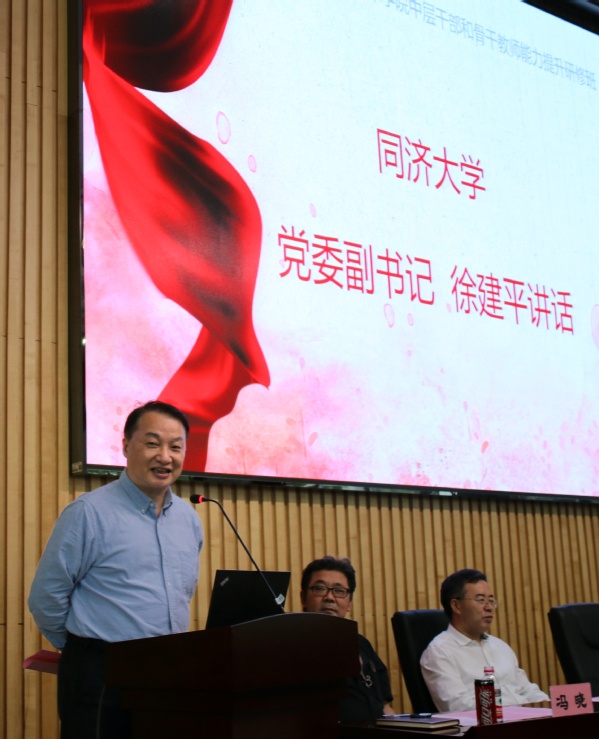 同济大学党委副书记徐建平在讲话中回顾了曾在济光教课的经理和眼中济光的发展变化,他指出,希望通过本次研修班展开更多有意义、内容丰富的研讨交流,使得未来两校在科研、党建等多领域开展更多合作。