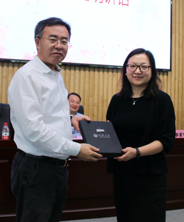 5月26日下午,我院中层干部和骨干教师能力提升研修班开班仪式在宝山校区学生活动中心圆形会议室举行。同济大学党委副书记徐建平、继续教育学院院长金福安、中德工程学院院长冯晓,我院党委书记姜富明、副书记刘丽出席开班仪式,全体中层干部、专业主任、基层党支部书记、辅导员及全体研修班学员与会。开班仪式上,继续教育学院院长金福安代表同济大学向我院学员代表、副书记刘丽授予同济大学校徽。
