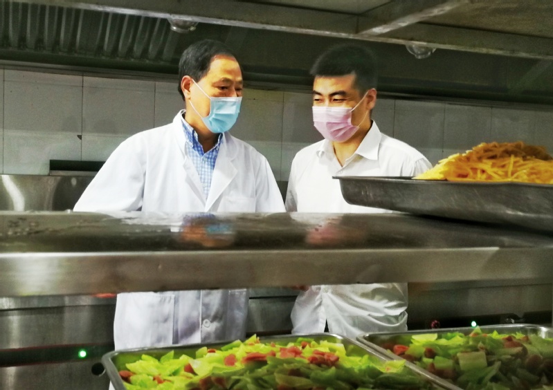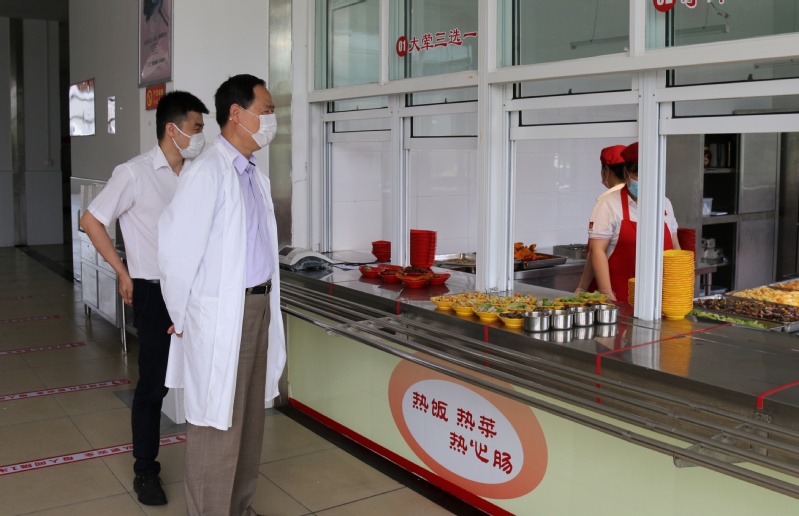 姜书记实地查看了食堂操作间、库房、餐具消毒间等食堂重点加工生产场所,并就疫情期间食堂的防控预案、就餐环境消毒、防控宣传以及应对就餐时段的人员分流路线设定和应对突发情况听取了后保处和食堂负责人的详细介绍。姜书记在肯定食堂准备工作的同时,要求食堂把好原材料进口关,严格采购索证制度,做好工作人员的防护和食堂的通风消杀工作,特别强调要保证食堂饭菜质量,确保食品安全,提高服务水平,为师生提供健康安全的就餐环境。