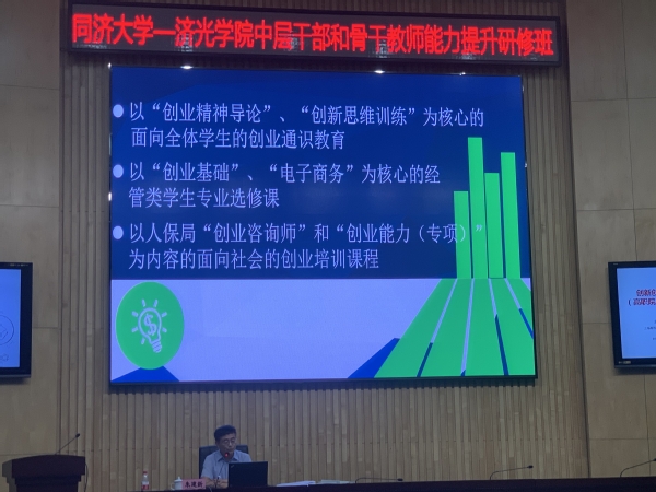 6月16日下午,第十期中层干部和骨干教师能力提升研修班的培训活动在学院圆形会议室如期举行。全体研修班学员与学院辅导员聆听上海高等教育学会高职高专创业教育专业委员主任朱建新教授作《创新创业教育在大学(高职院校)的探索和实践》的专题报告。