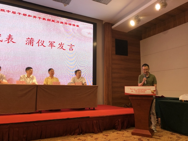全体学员依次上台领取了结业证书。建筑系党总支书记、副主任蒲仪军作为学员代表上台发言,他代表所有学员感谢同济大学的精心组织和济光学院领导的大力支持。此次学习培训为全体中层干部和骨干教师提供了难得难忘、收获满满的高水平理论进修和业务能力提升的学习机会,感谢所有专家教授带来的有关国内外教育领域发展态势以及分享前沿创新成果。全体全员将在学院的领导下,以本次学习为新的起点,继续深化高职教育改革,提升“三全育人”的质量,齐心聚力,为济光新的发展贡献力量。