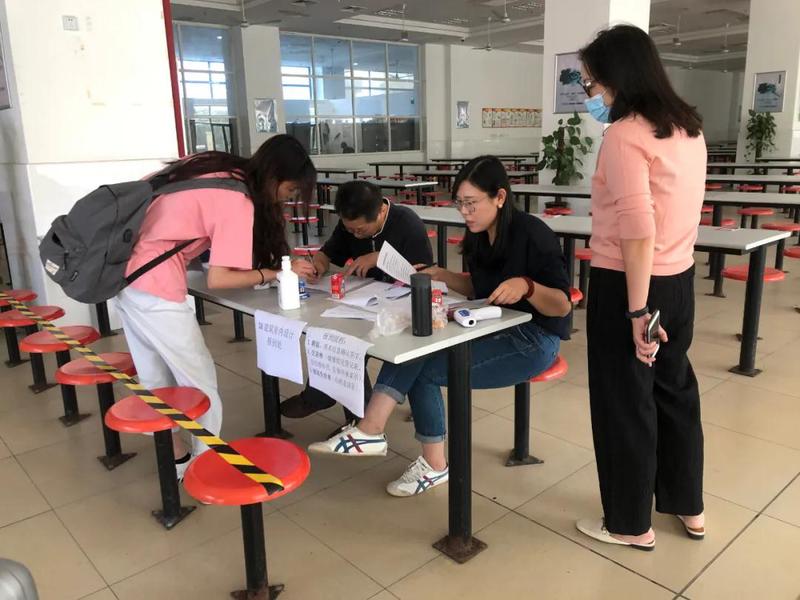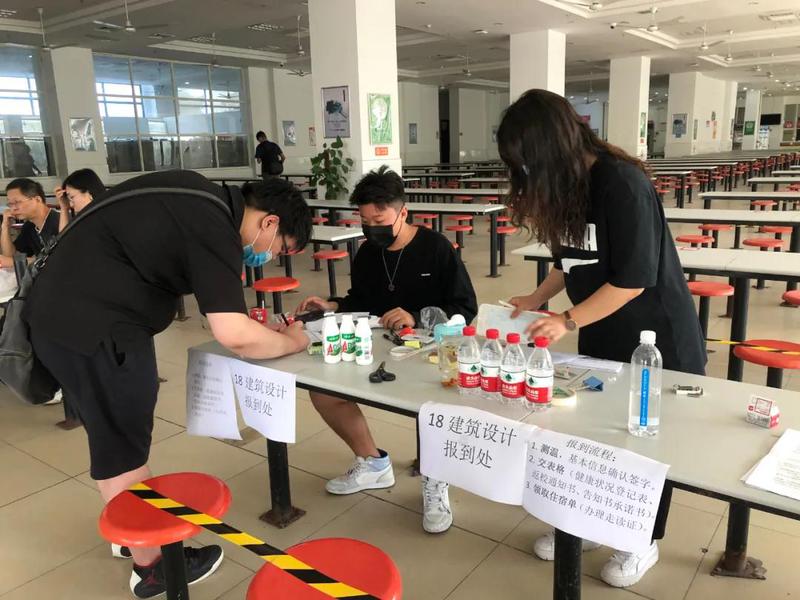 返校同学们在各院系的安排下在各自的报到点完成报到手续。志愿者帮助学生搬运大件行李,告知学生报到地点等,积极引导返校同学有序办理,为返校学生安全、有序的进入校园筑起守护之墙。