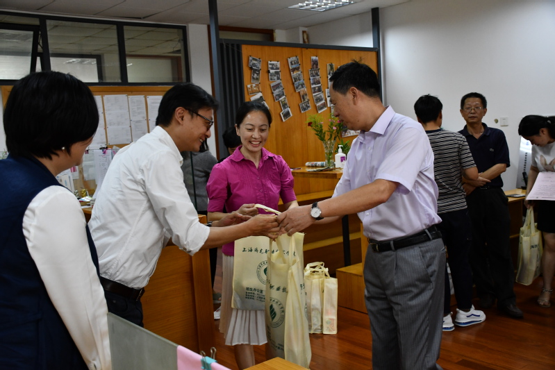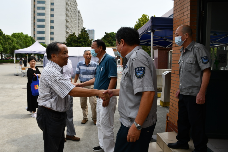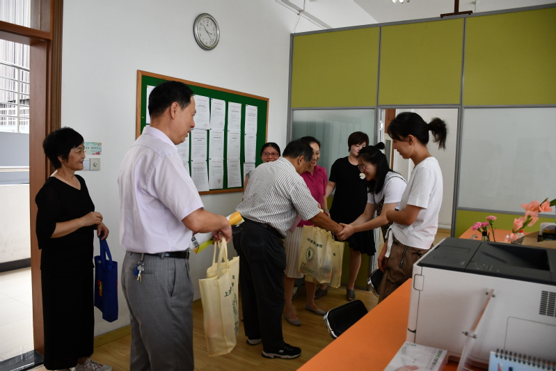 教师节上午,院领导李永盛、党委书记姜富明代表学院党政领导班子先后来到医务室、招生办、学生处、建筑系教师办公室、经管系教师办公室、宿舍楼及门卫室,向来自学院各条战线的教职工致以节日的问候,感谢他们多年来在岗位上的辛勤耕耘和为济光教育事业发展作出的贡献,并代表学校向所有教职工赠送慰问品。