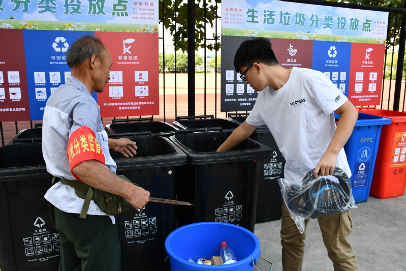 根据《上海市高等学校生活垃圾分类指南(试行)》《上海市高等学校生活垃圾分类标准(试行)》等要求,为提升全院垃圾分类精细化管理水平,学院于9月28日起正式开始实施垃圾定时定点投放,呼吁师生重视垃圾分类,努力营造绿色的校园生活环境,营造和谐文明的校园环境。党委书记姜富明、副院长王云飞及后保处负责老师们到场查看垃圾投放实施情况。各职能部门老师与学生志愿者们自愿加入校园垃圾分类志愿者队伍,积极引导师生们在生活中贯彻落实到垃圾分类的要求。