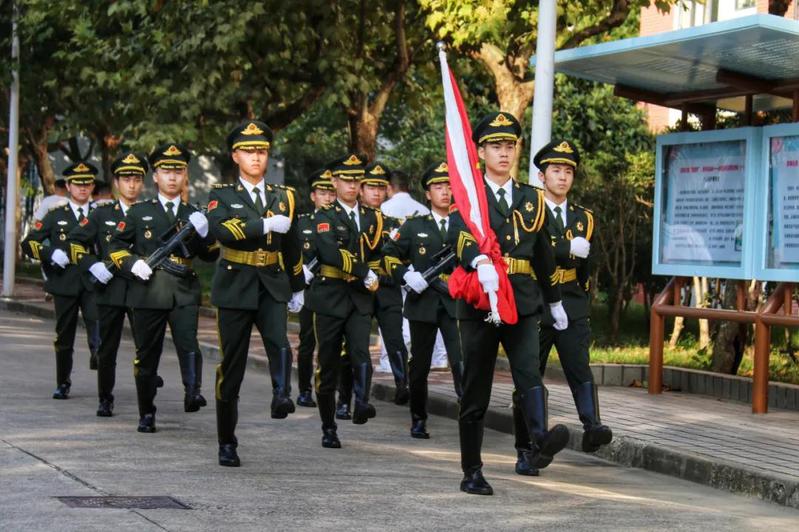 国旗班仪仗队的同学们英姿飒爽,步伐矫健,护送着鲜艳的五星红旗正步走向旗杆。全体师生面向国旗肃立致礼。军乐队奏响激昂的《义勇军进行曲》,鲜艳的五星红旗冉冉升起,迎风飘扬。学生代表2019级护理1班陈思悦同学分享防疫志愿者时的所思所感,并表示会在新时代的长征路上,勇担自己的时代使命。