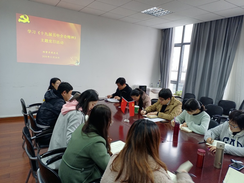 为深入学习贯彻党的十九届五中全会精神,11月26日中午12:15,经管系党总支在教学楼415召开了“学习《党十九届五中全会》精神”主题党日活动。活动由经管系党总支书记胡春宝主持,经管系全体教工党员参加了此次学习活动。