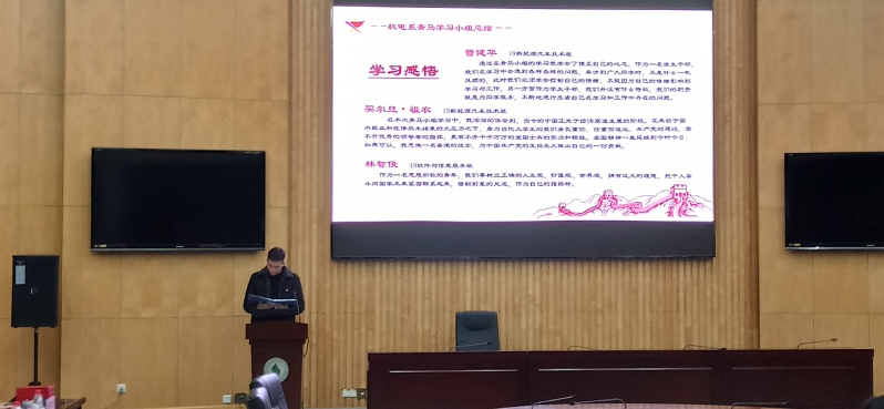 2019年青马工程项目负责人张贝贝简要总结了本年度开展的活动之后,各院系青马学习小组代表共7位学员使用PPT的形式展示并总结了本组青马学习活动的形式和具体内容,以及小组学员的心得体会。结业典礼上为各院系青马学生代表颁发了结业证书。