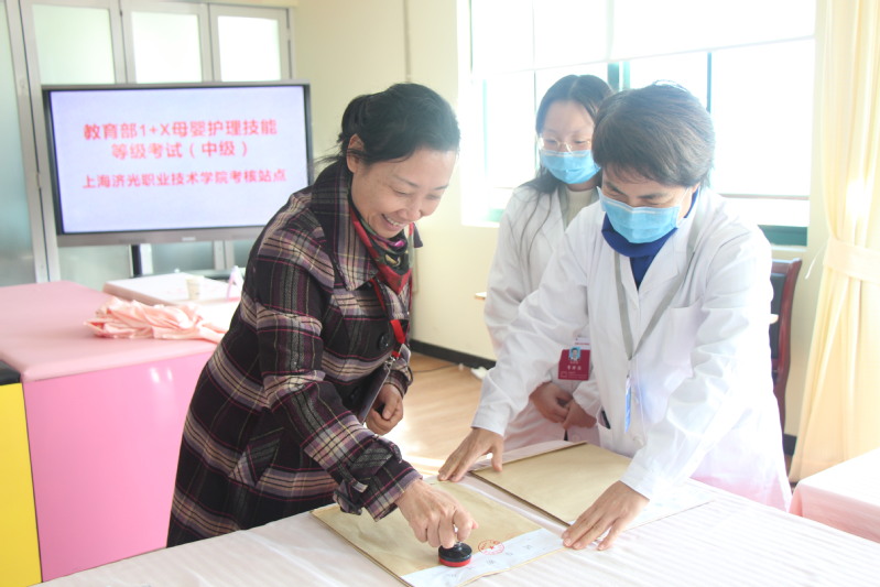 本证书考核由教育部委托济南阳光大姐服务有限公司承担,我院作为上海市考核站点,除承担本校学生的母婴护理考试工作外,还承担了上海震旦职业技术学院40位考生的理论与实操的考试。护理学院严格按照考核要求布置考试流程和路线设计,共设置了一个理论考场、四个实操考台和两个候考室,并在前期进行模拟演练,为考核工作的顺利进行奠定了扎实的基础,得到了督导的高度认可。