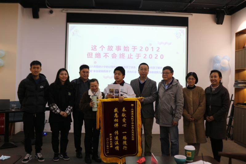 历届学子以文字、视频等方式表达对母校的祝福和对自闭症儿童小宇的想念及鼓励。小宇家长赠予我校红会“奉献爱心、一路随行,感恩相伴、传递温情”的锦旗,感谢这八年来对小宇的游戏陪护、教学辅助、行为训练等志愿服务。