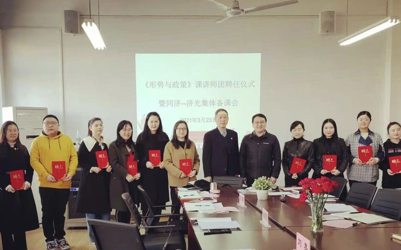 3月23日上午9:00,《形势与政策》课讲师团聘任仪式暨同济—济光《形势与政策》教研室集体备课会在宝山校区学生活动中心305室召开。党委书记姜富明、党委副书记刘丽出席了会议,《形势与政策》讲师团成员、思政教师参加了会议。