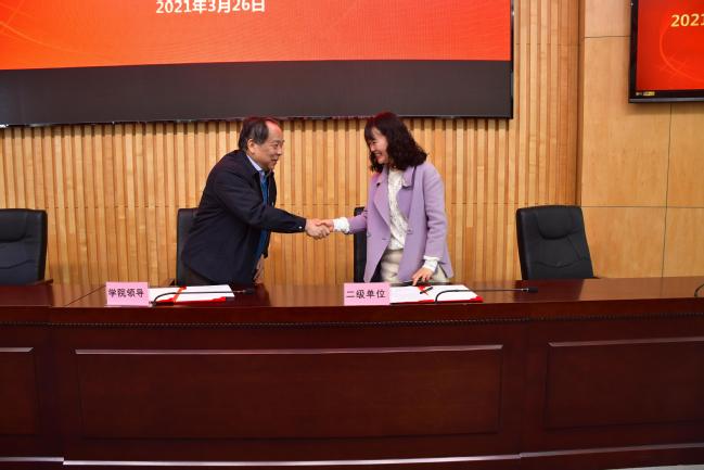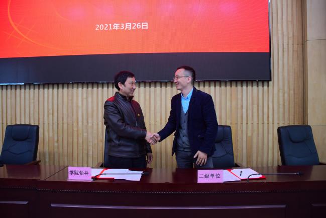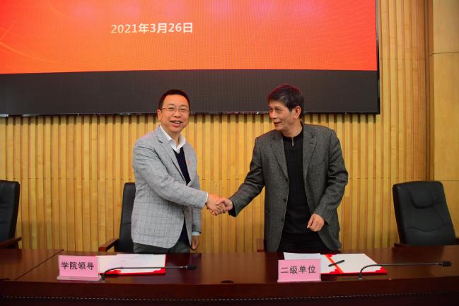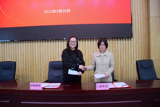 随后,会上举行学院党风廉政签约仪式,五个院领导与各自分管部门进行了学院二级单位(部门)落实党风廉政建设责任承诺书的签署。