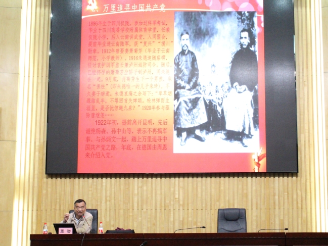 学以致用,方为学。开展党史学习教育,理论学习是基础,知行合一是关键。因此开班仪式后,思政部邀请了来自同济大学马克思主义学院的张劲教授为师生们讲授了本期学习班的第一课《从朱德入党看中共初心》。张教授从事马克思主义基本原理、科学社会主义理论研究。出版了专著《中流砥柱——抗战时期的中国共产党》等,先后获得宝钢优秀教师奖,上海市优秀教师奖。他从中共百年主流讲起,指出百年党史的主流,是为人民谋幸福,为民族谋振兴,即“不忘初心 牢记使命”。紧接着讲述了朱德万里追寻中共之路,以及朱德的“初心”与经历,回顾了中共诞生的历程与时代潮流,强调了“时势造英雄”的唯物史观;同时,英雄也得顺应潮流,即时势。从一位伟人的入党经历切入,引出了中国共产党成立的初心,张劲教授用平和生动又幽默蕴含哲理的语言让青马班的同学们在认真学习了党史的同时更加深刻体会到中国共产党的初心,引发学生对党史的领悟和入党的认真思考。