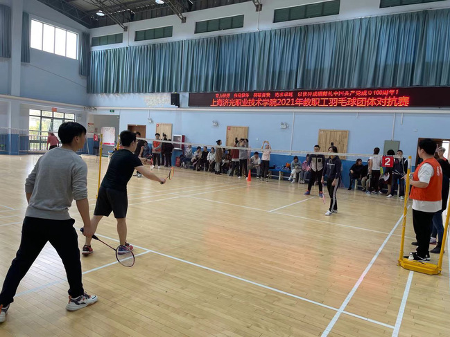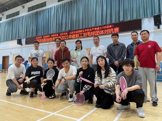 为丰富教职工业余文化生活,培养良好的运动健身习惯,作为庆祝建党100周年系列活动之一,学院工会联合基础部体育教研室于2021年4月2日中午12:30,在体育馆二楼举办了学院2021年教职工羽毛球团体对抗赛,学院副院长、工会主席王云飞亲临现场,并代表机关第四部门工会出战。